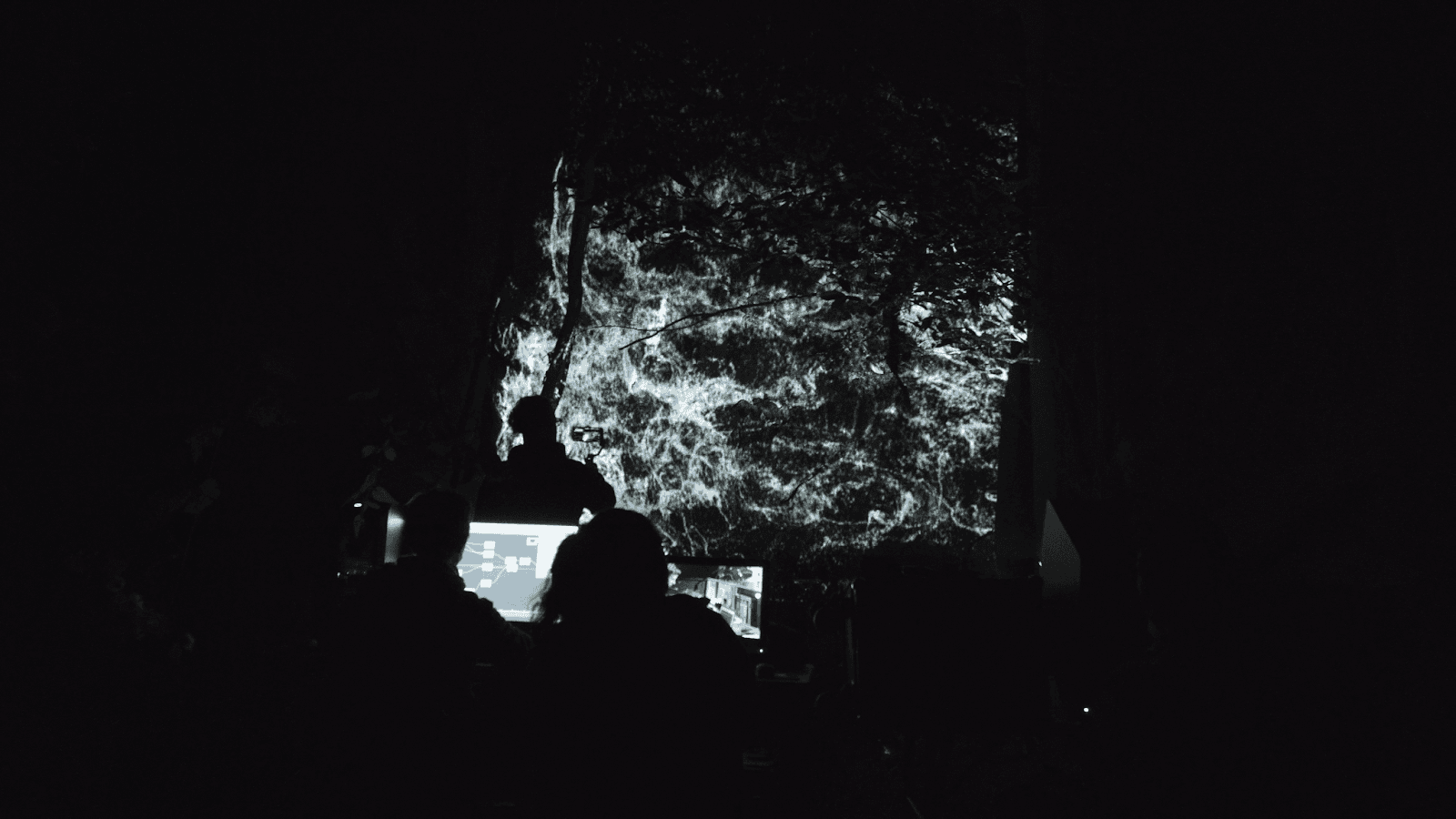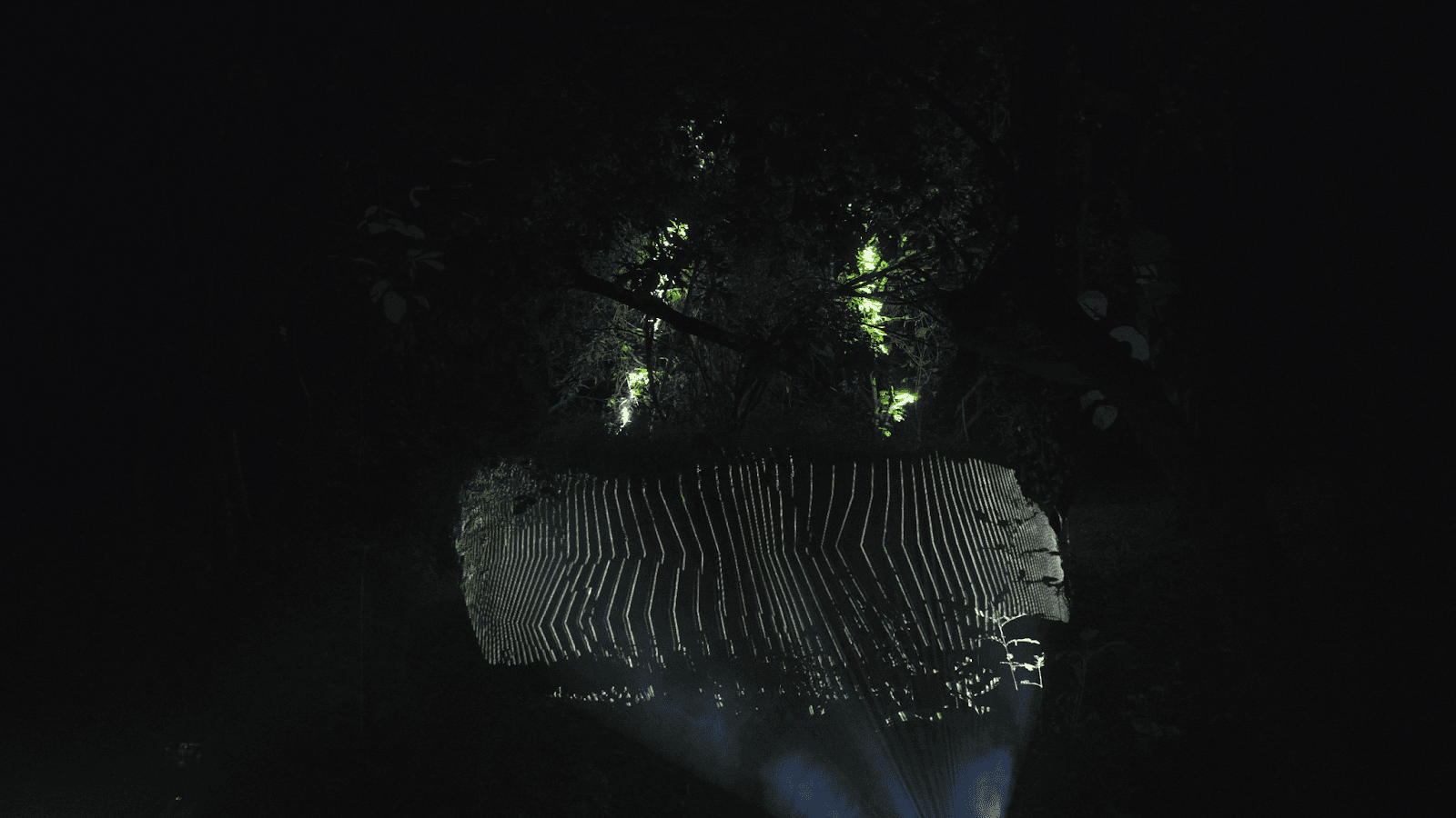 “La iluminación se hizo en sitio, buscando dar profundidad y contexto a los elementos mappeados sin que la luz compitiera con el video. Descubrimos que la naturaleza es tan rica en detalles y texturas que, con ayuda de la máquina de humo, en algunos momentos la iluminación sí podía ser protagonista de la narrativa visual.”