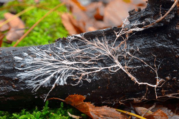 Instalación visual en el bosque de Tepoztlán. Simbiosis del micelio.