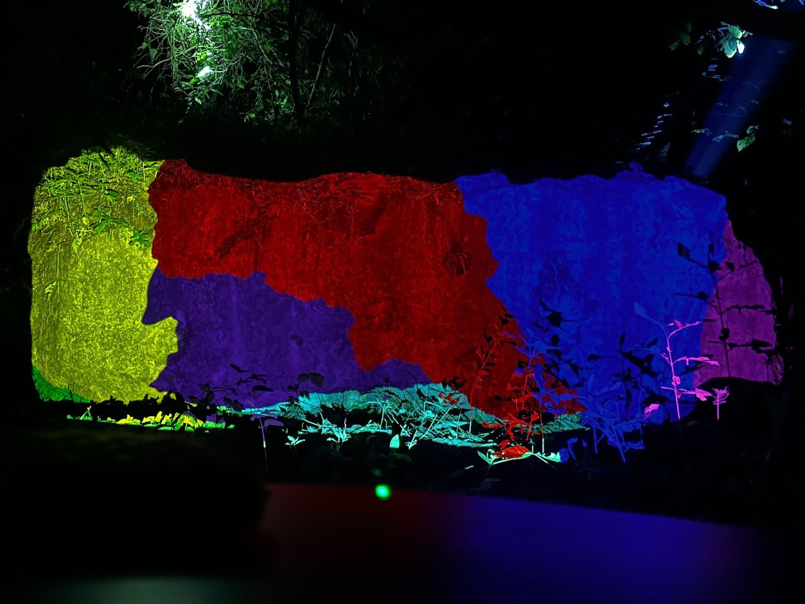 Escogimos este lugar por sus características geológicas y densidad biológica que permiten proyectar e iluminar sus rocas y árboles.